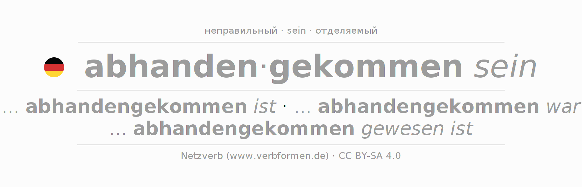 Глагол abhandenkommen спрягается в индикативе Пассив с sein в настоящем, прошедшем и будущем времени