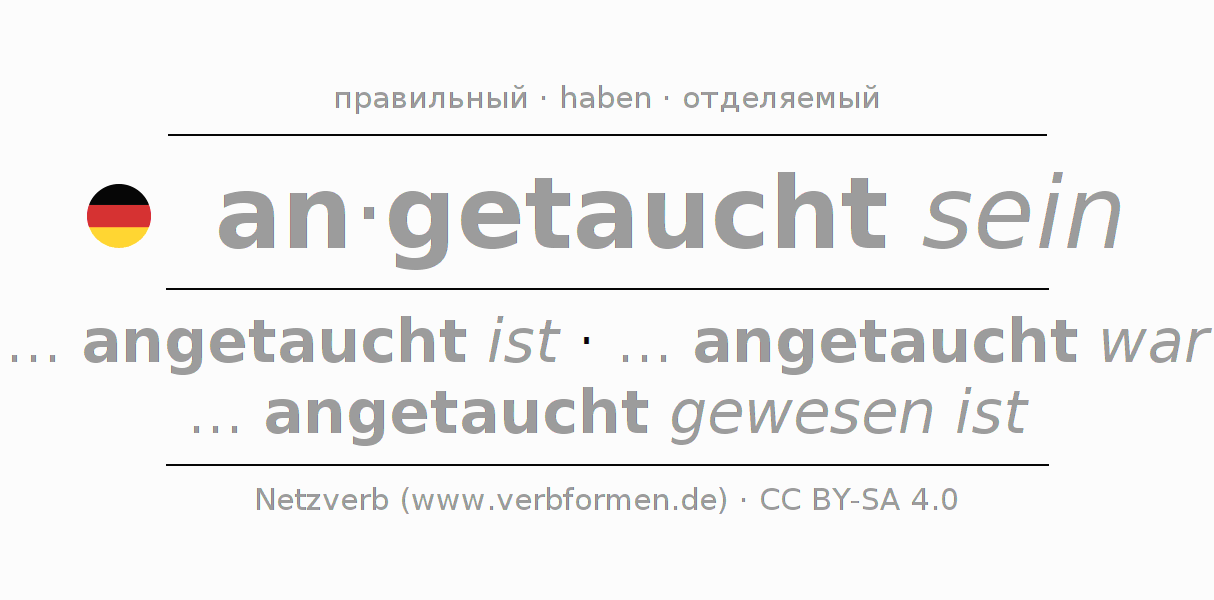 - Инфинитив I: angetaucht sein, angetaucht zu sein