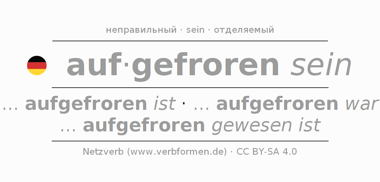 - Инфинитив I: aufgefroren sein, aufgefroren zu sein
