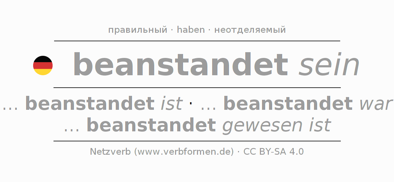 Все временные формы глагола и отглагольных форм beanstanden