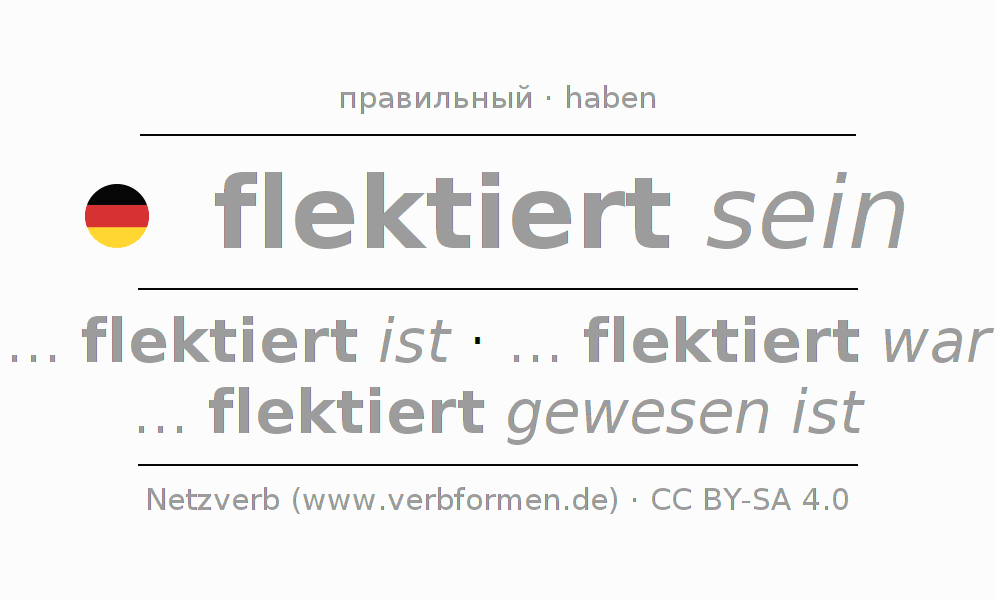- Презенс: ... ich flektiert bin, ... du flektiert bist, ... er flektiert ist, ... wir flektiert sind, ... ihr flektiert seid, ... sie flektiert sind