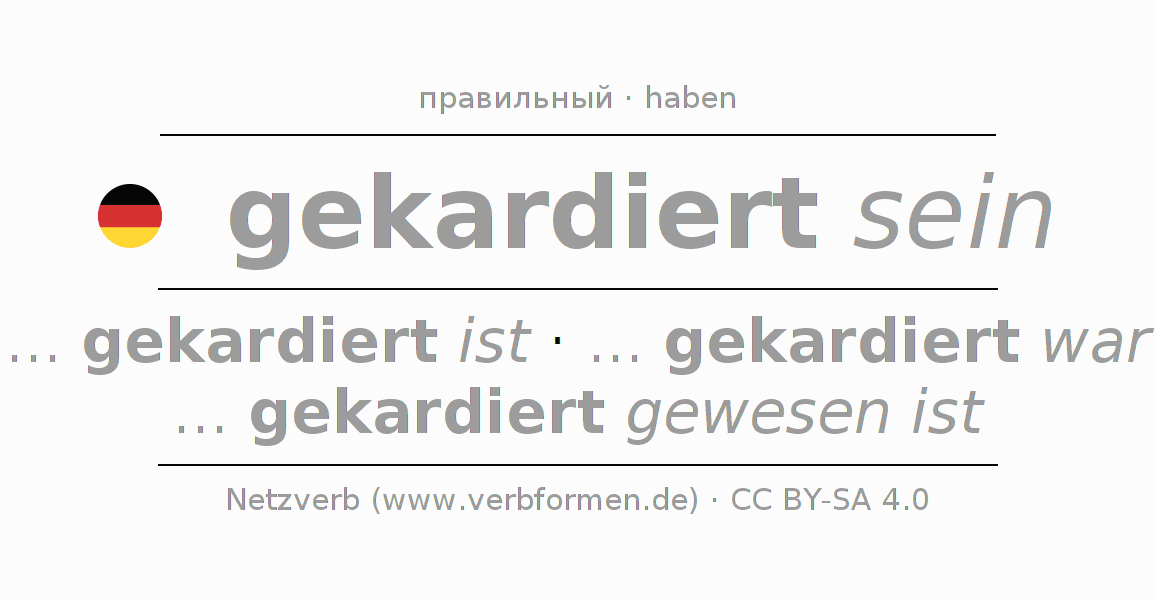 - Инфинитив II: gekardiert gewesen sein, gekardiert gewesen zu sein