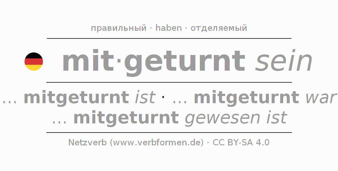 - Инфинитив I: mitgeturnt sein, mitgeturnt zu sein