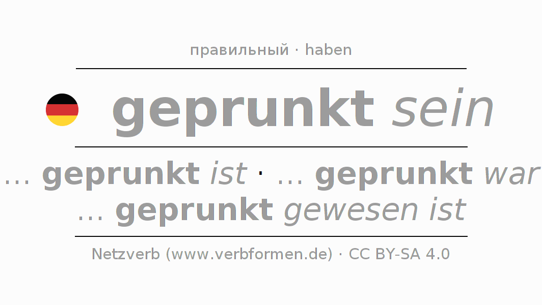 - Презенс: ... ich geprunkt bin, ... du geprunkt bist, ... er geprunkt ist, ... wir geprunkt sind, ... ihr geprunkt seid, ... sie geprunkt sind