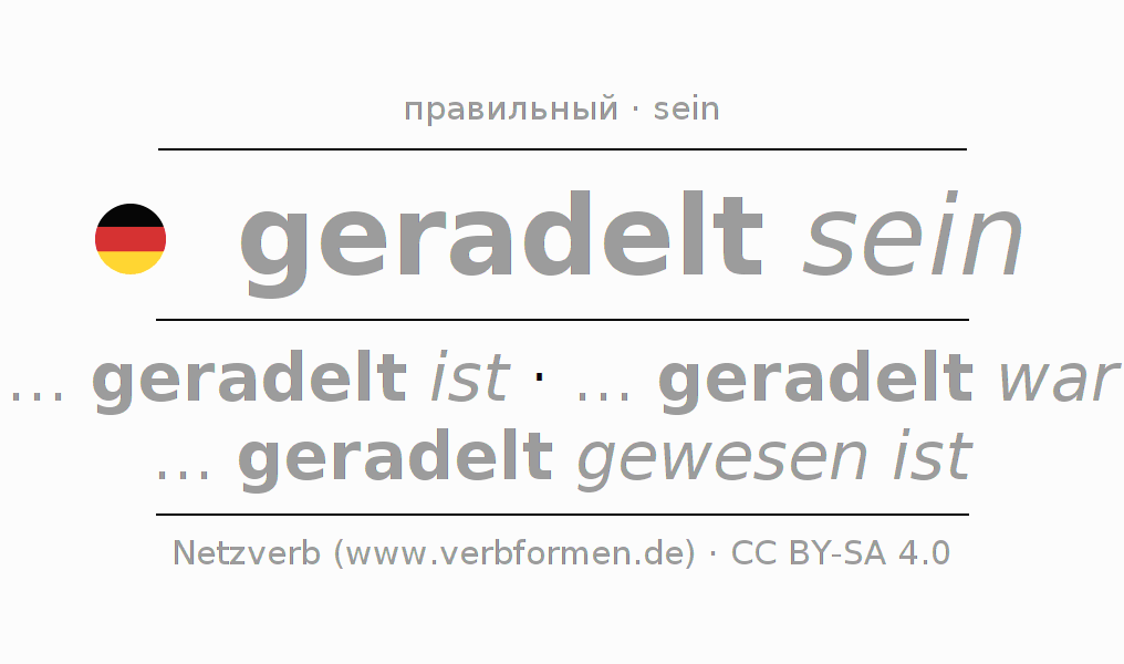 - Презенс: ... ich geradelt bin, ... du geradelt bist, ... er geradelt ist, ... wir geradelt sind, ... ihr geradelt seid, ... sie geradelt sind
