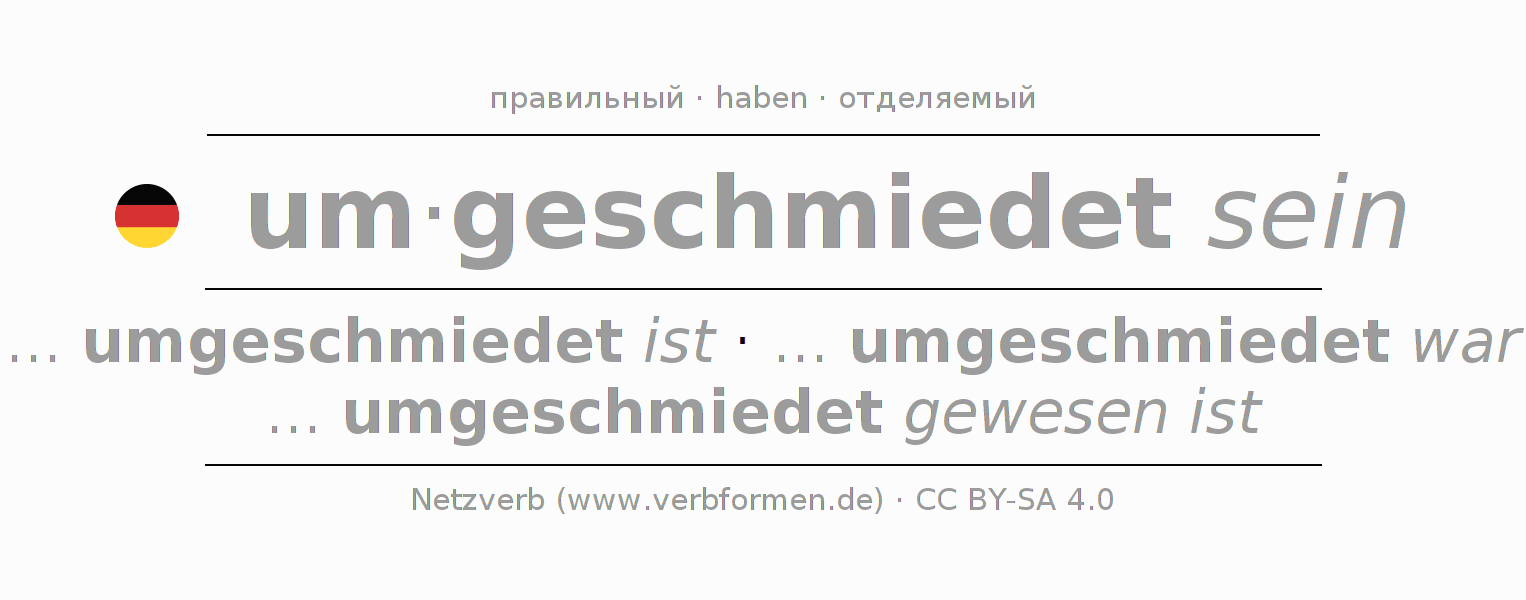 - Инфинитив I: umgeschmiedet sein, umgeschmiedet zu sein