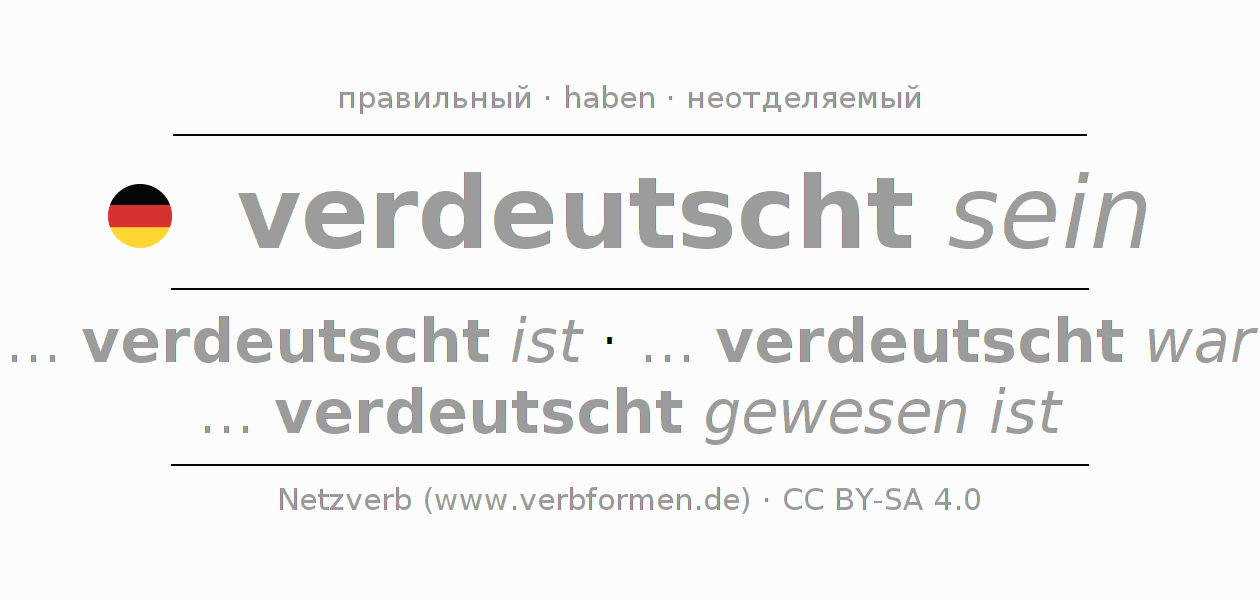 Все временные формы глагола и отглагольных форм verdeutschen