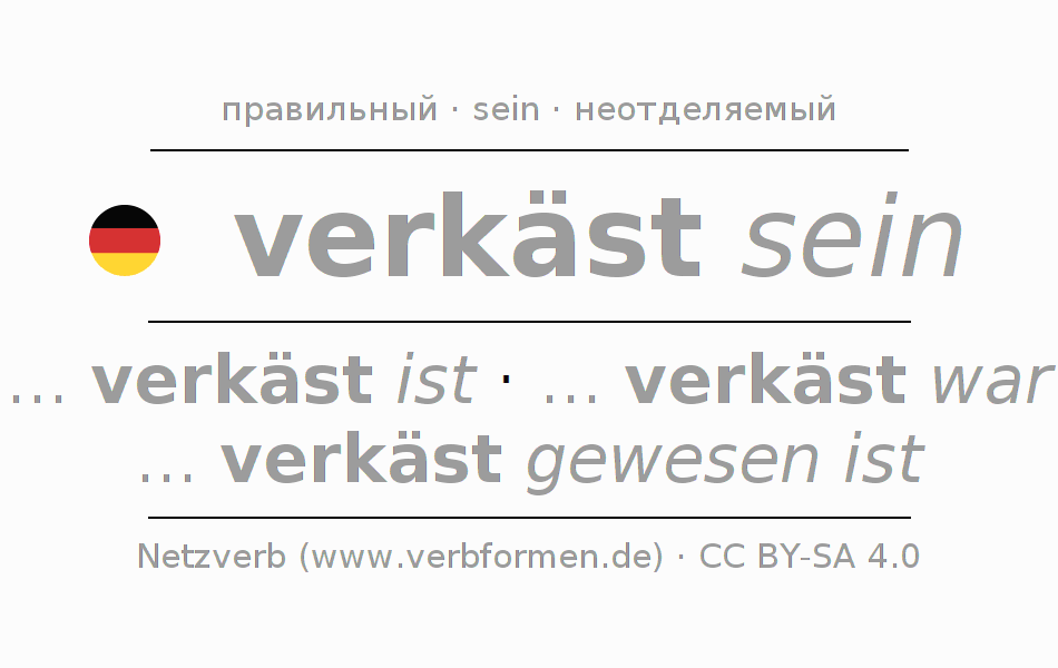 - Презенс: ... ich verkäst bin, ... du verkäst bist, ... er verkäst ist, ... wir verkäst sind, ... ihr verkäst seid, ... sie verkäst sind