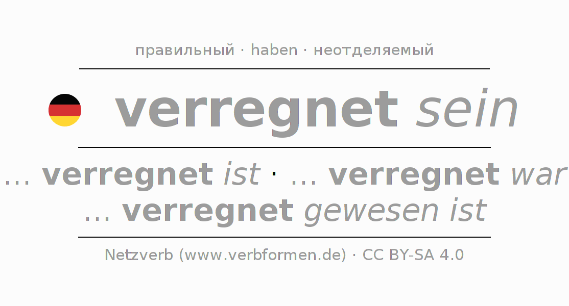 - Презенс: sei (du) verregnet, seien wir verregnet, seid (ihr) verregnet, seien Sie verregnet