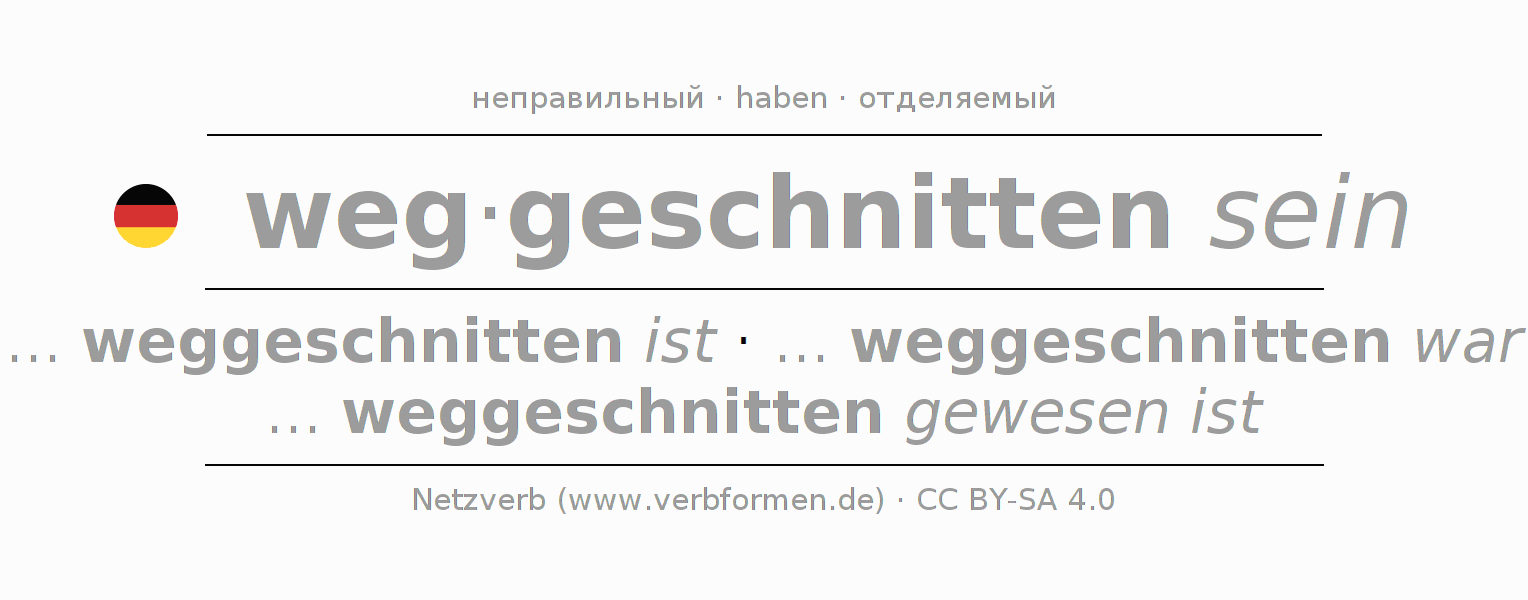 - Презенс: ... ich weggeschnitten bin, ... du weggeschnitten bist, ... er weggeschnitten ist, ... wir weggeschnitten sind, ... ihr weggeschnitten seid, ... sie weggeschnitten sind