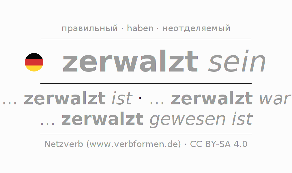 - Инфинитив I: zerwalzt sein, zerwalzt zu sein