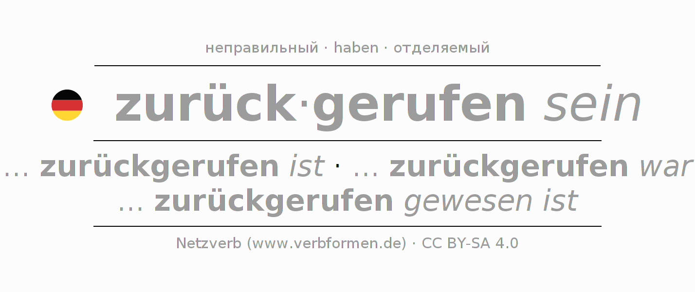 - Инфинитив I: zurückgerufen sein, zurückgerufen zu sein