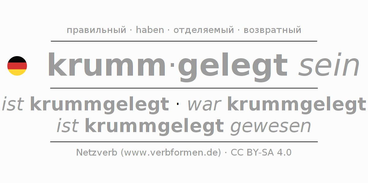 - Инфинитив I: krummgelegt sein, krummgelegt zu sein