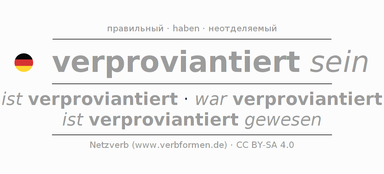 Глагол verproviantieren спрягается в индикативе Пассив с sein в настоящем, прошедшем и будущем времени