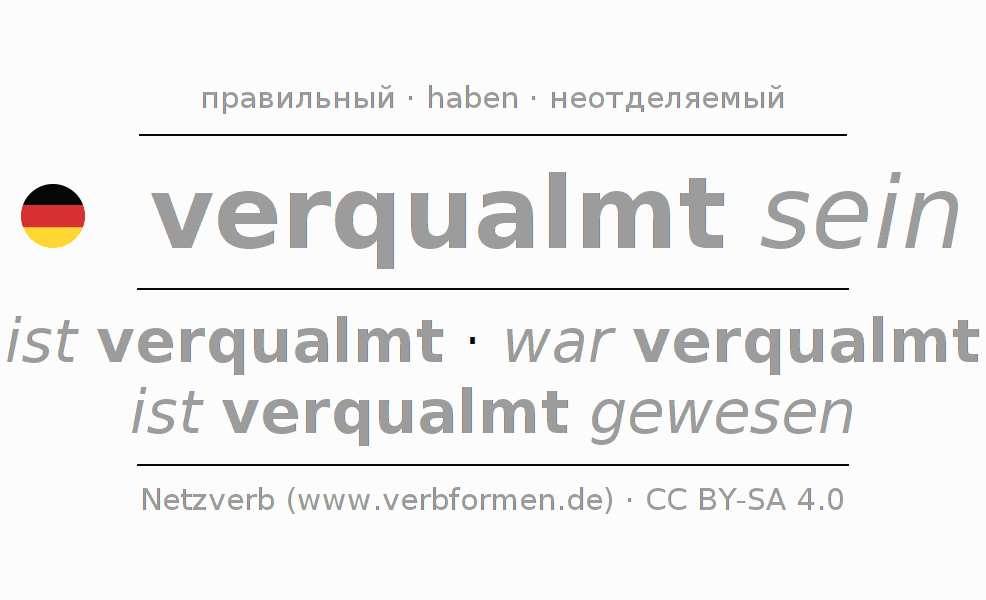 Все временные формы глагола и отглагольных форм verqualmen (hat)