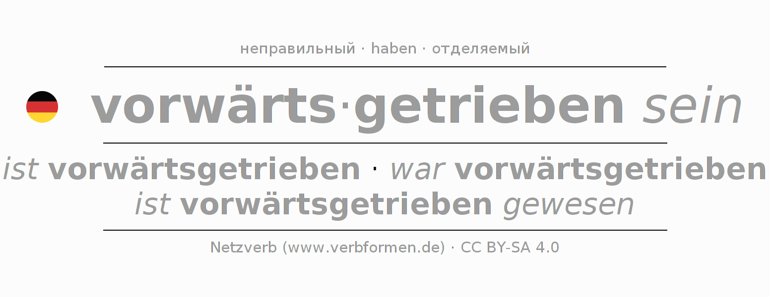 Все временные формы глагола и отглагольных форм vorwärtstreiben