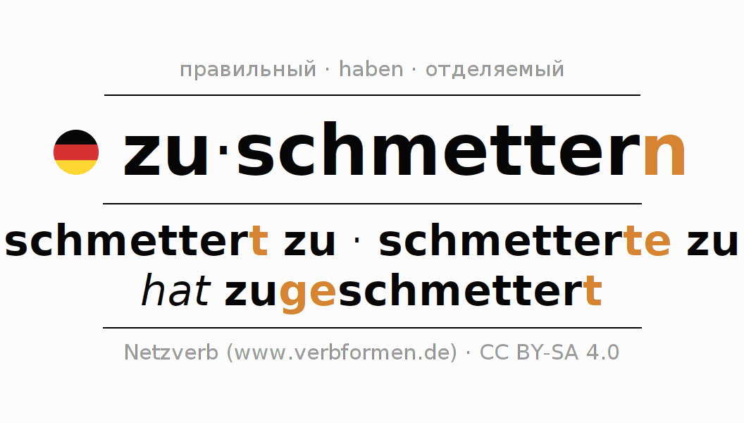 Значения и синонимы слова zuschmetternПравила образования